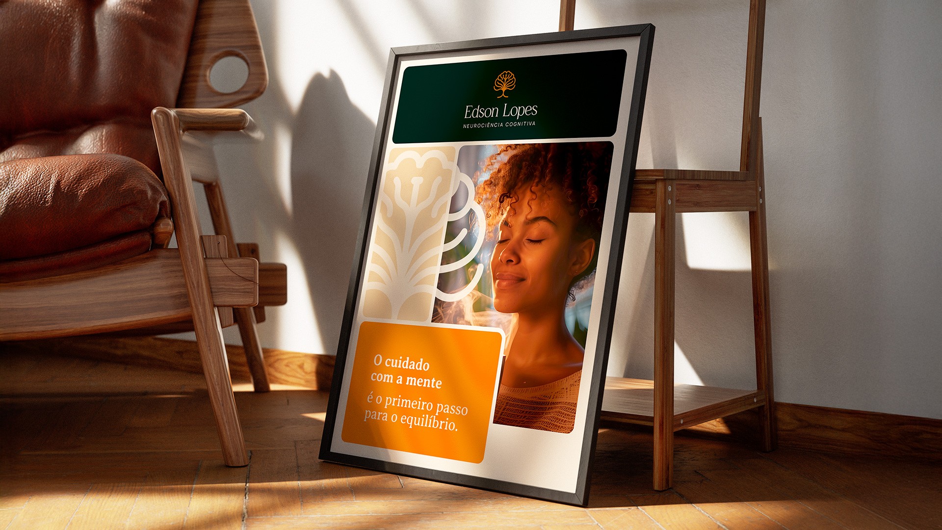 Juntos, esses elementos resolvem o desafio inicial ao criar uma marca que é, ao mesmo tempo, séria e acolhedora, científica e humana, posicionando Edson Lopes como uma autoridade acessível no campo da psicologia.